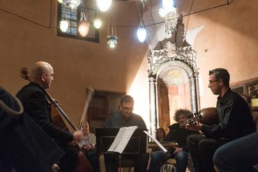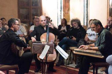 Three of the oldest musical cultures, Palestinian, Syrian and Greek, are explored by the virtuoso musicians of Symbiosis Project. Using their musical instruments, oud, kanun and cello, they exchange their personal musical experiences derived from the traditions of their respective countries.